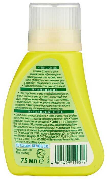 - Маленький объем (75 мл для пятновыводителя) быстро заканчивается при частом применении, требует частых покупок.