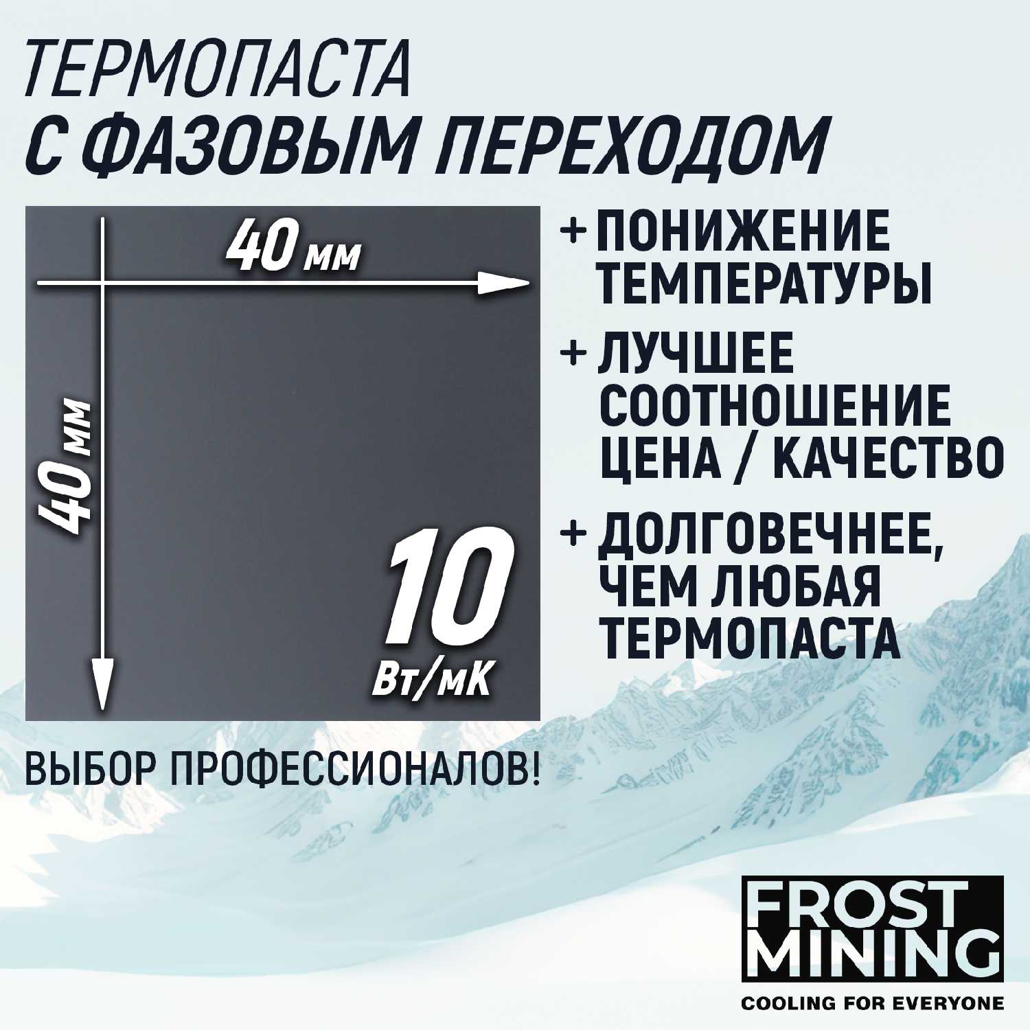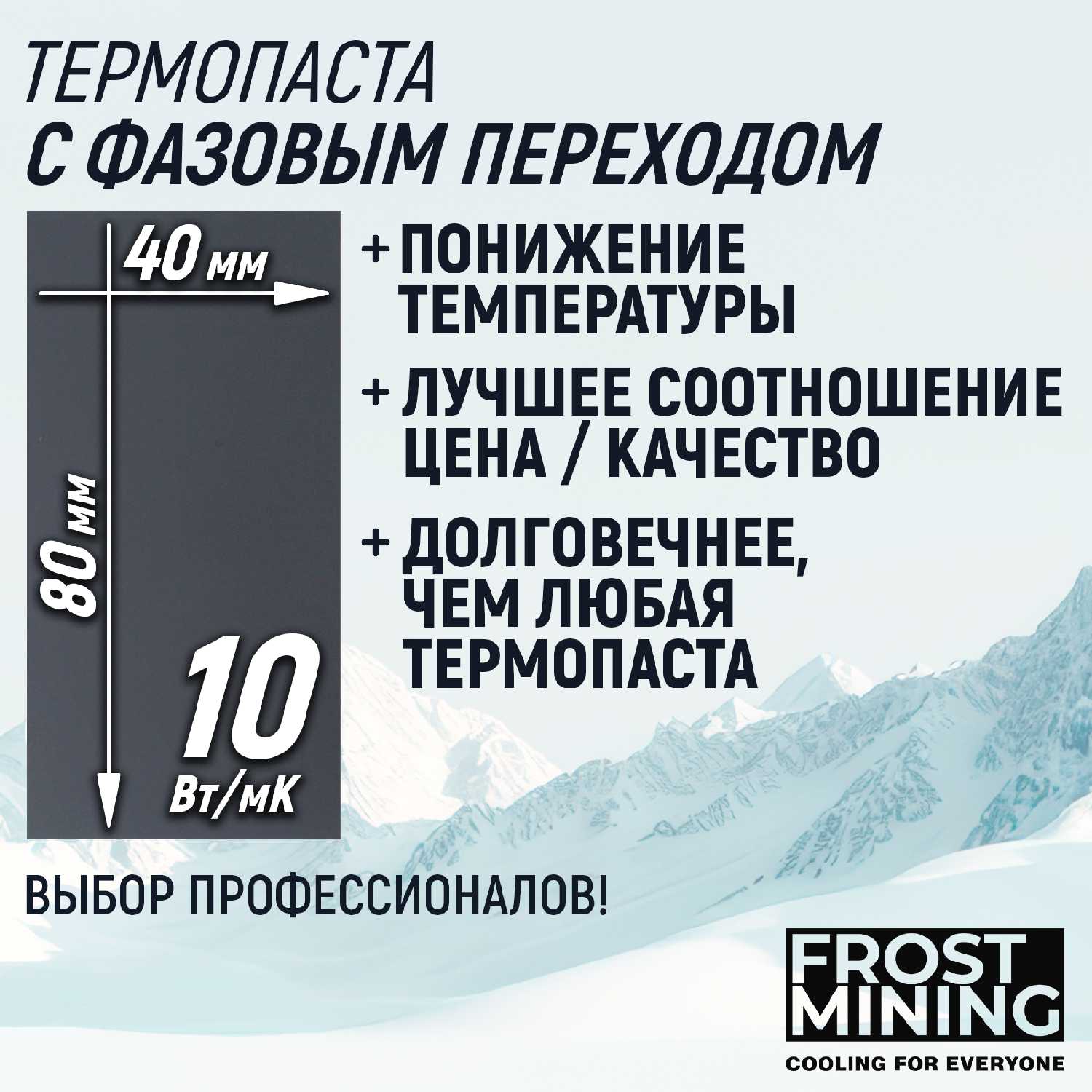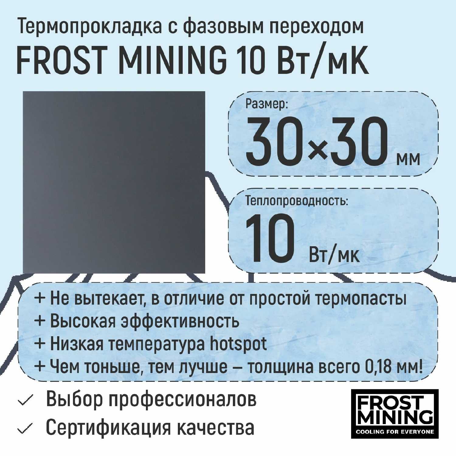 Характеристи Frostmining Термопаста с фазовым переходом (10Вт/Мк)