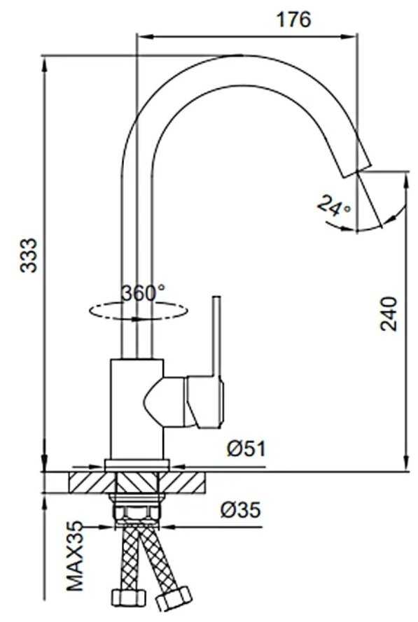 - Излив поворачивается на 360 градусов, что упрощает мытье посуды.