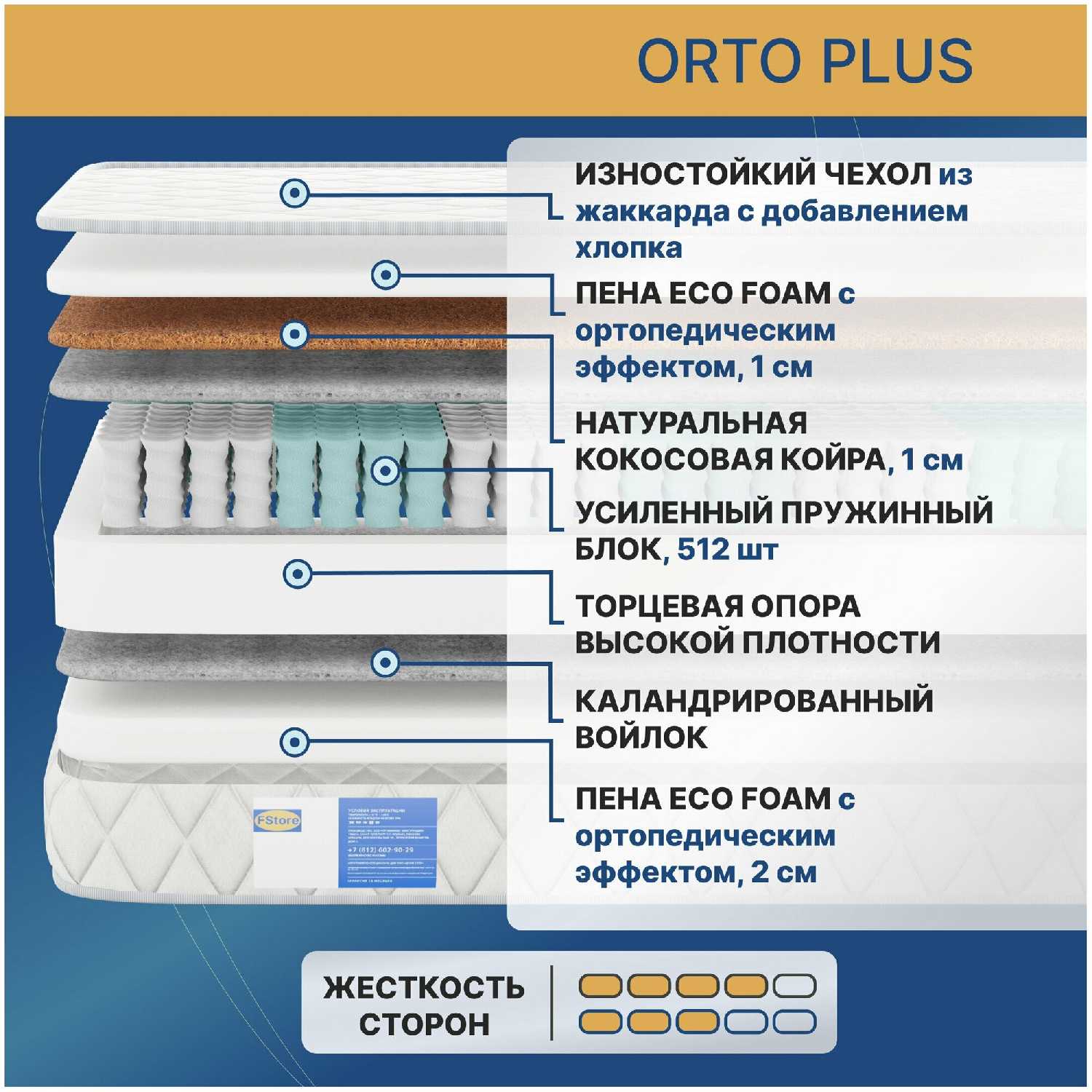 Комбинированный наполнитель : | Высокопрочный жаккардовый чехол, Усиленный пружинный блок, Eco Foam, Термовойлок, Латексированная кокосовая койра |