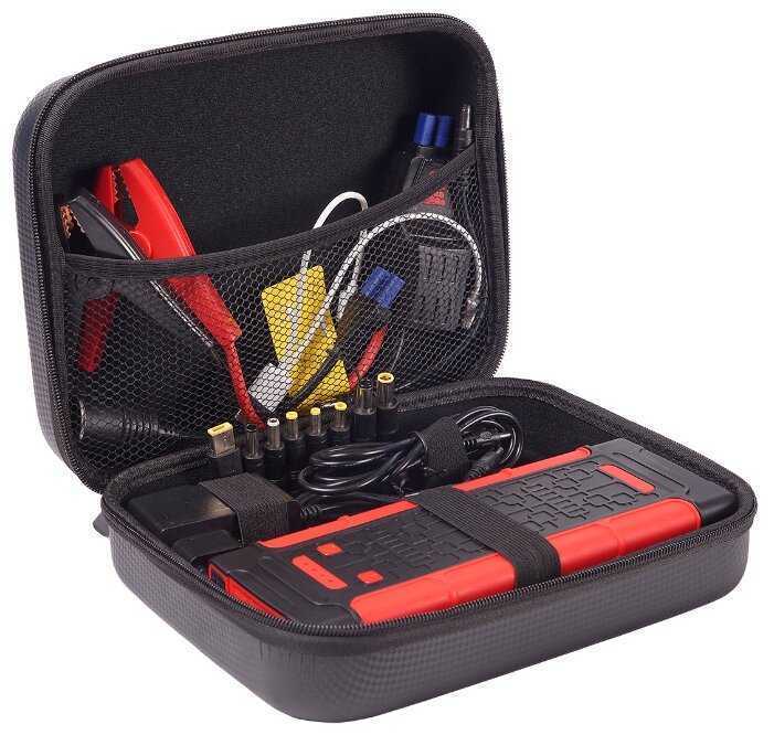Подробная комплектация : | пусковое устройство, клеммы для запуска двигателя, адаптер переменного тока, USB-кабель, набор переходников для зарядки ноутбуков, кабель для зарядки от гнезда прикуривателя автомобиля, дополнительная розетка 12 В для подключения автомобильных аксессуаров, чехол |