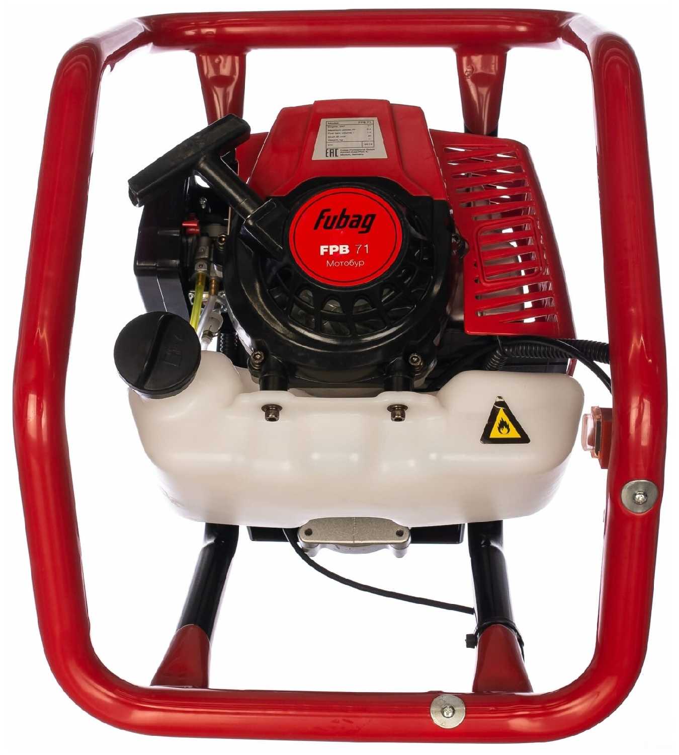 После приобретения данного бура- ручной бур был "похоронен с почестями". Как я раньше работал без него? Не знаю. Параллельно с буром были куплены: пружинный адаптер(сбережёт редуктор от ударов) , два удлинителя на 500мм и на 1000мм., шнеки с двухзаходной спиралью разных диаметров,но фирмы ADA, т.к. были дешевле фубаговских- заходят в грунт сами. Первый раз запустился раза с четвёртого, потом нормально. Все соединения были затянуты. Курки газа могли бы сделать хотя бы алюминиевыми- пластмассовые не внушают доверия, тоже самое и про пластик. В целом бур отличный, время эксплуатации покажет. Если бурить без удлинителя шнека, то один справляешься, но вот с удлинителем, даже на 500мм. уже тяжело, лучше вдвоём, т.к. длинна в сборе(адаптер, удлинитель, шнек) получается 1400мм.