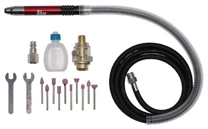 | Комплектация : | Пневмогравер, Шланг, Штуцер, 10 резцов, Минилубрикатор, Ключи, Кейс. |