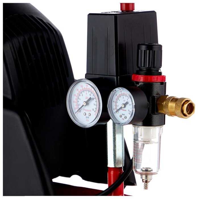Брал для работы с нейлером, справляется отлично. Остальные плюшки из комплекта пойдут бонусом, думаю будет не лишним. Проблема с отключением двигателя при достижении номинального давления связана с кривой регулировкой реле. Параметры реле отключения у меня стояли по умолчанию выше установленного давления срабатывания в аварийном клапане. Лечится просто, откручиваем крышку реле, один винт рядом с выключателем, сам выключатель не снимаем он встроен в крышку, далее крутим болт на 10 против часовой стрелки, есть указатели с пиктограммой + и -, не ошибетесь. Мне хватило повернуть болт чуть больше чем на пол оборота, теперь компрессор отключается при давлении в ресивере 8,1 BAR.