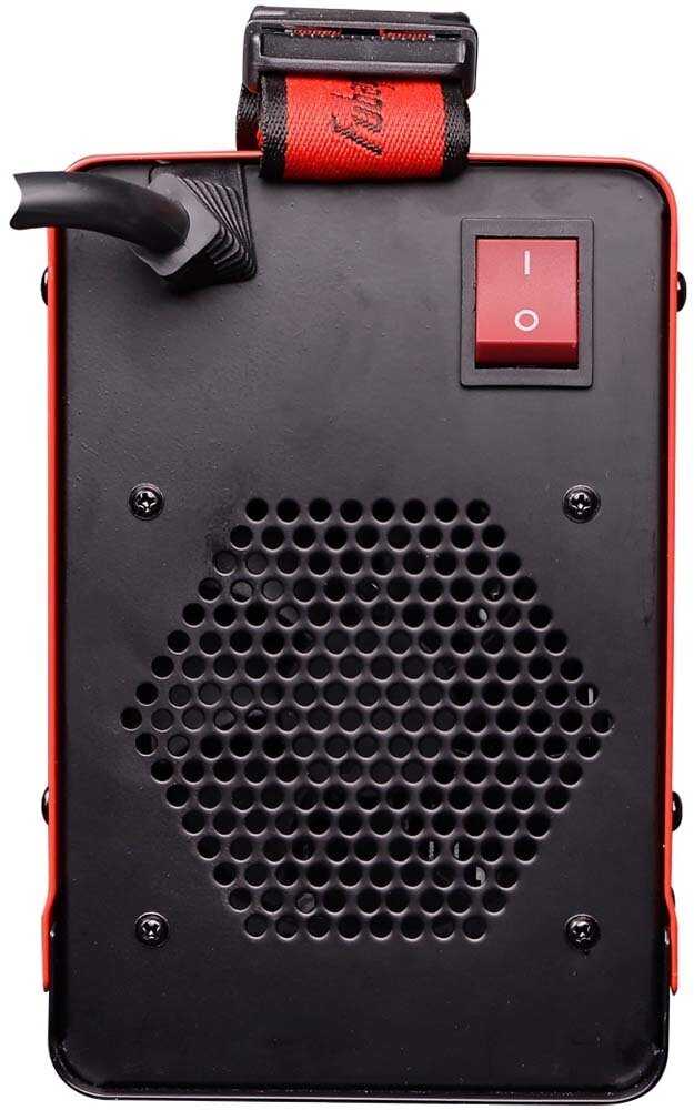 Кабели алюминиевые омедненные длиной 1,5 м на держак и 1 м на массу греются при нагрузке 3 мм электродом на 126-160 А, байонетные соединения люфтят и выпадают, требуя замены на медные КГ 8 м для стабильности. Держатель электродов хилый, разболтывается быстро и плавится от брызг, ремень синтетический скользкий и прогорает, отсутствует ручка для переноски. Цифровой дисплей показывает ток, но регулировка шаговая без плавности, на 50 А маловато, на 51 А резкий скачок прожигает металл. Компактный металлический корпус весом около 5 кг удобен для дачи и гаража, плечевой ремень позволяет лазить по лестницам, вентилятор охлаждает эффективно после 4 электродов.