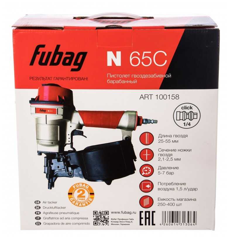 | Комплектация : | Барабанный гвоздезабивной пистолет Fubag N65C |