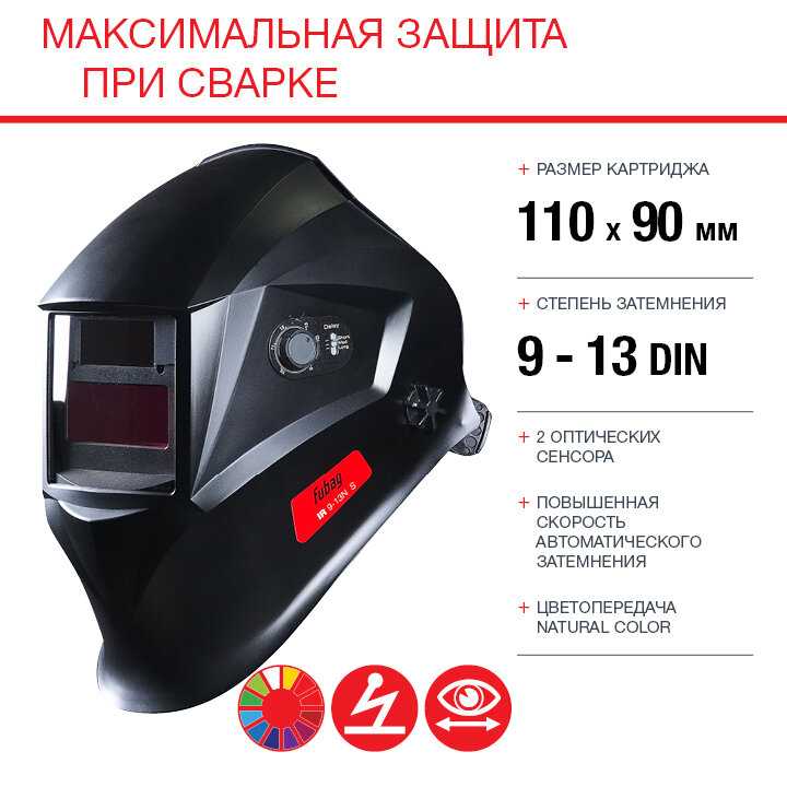 | Особенности : | защита от УФ/ИК лучей, защита от брызг расплавленного металла, изменяемая скорость срабатывания светофильтра, подходит для газосварки, ударопрочный материал, установка защитного стекла |