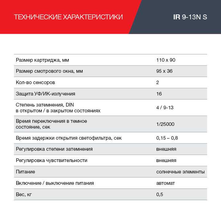 | Максимальная степень затемнения : | 13 DIN |