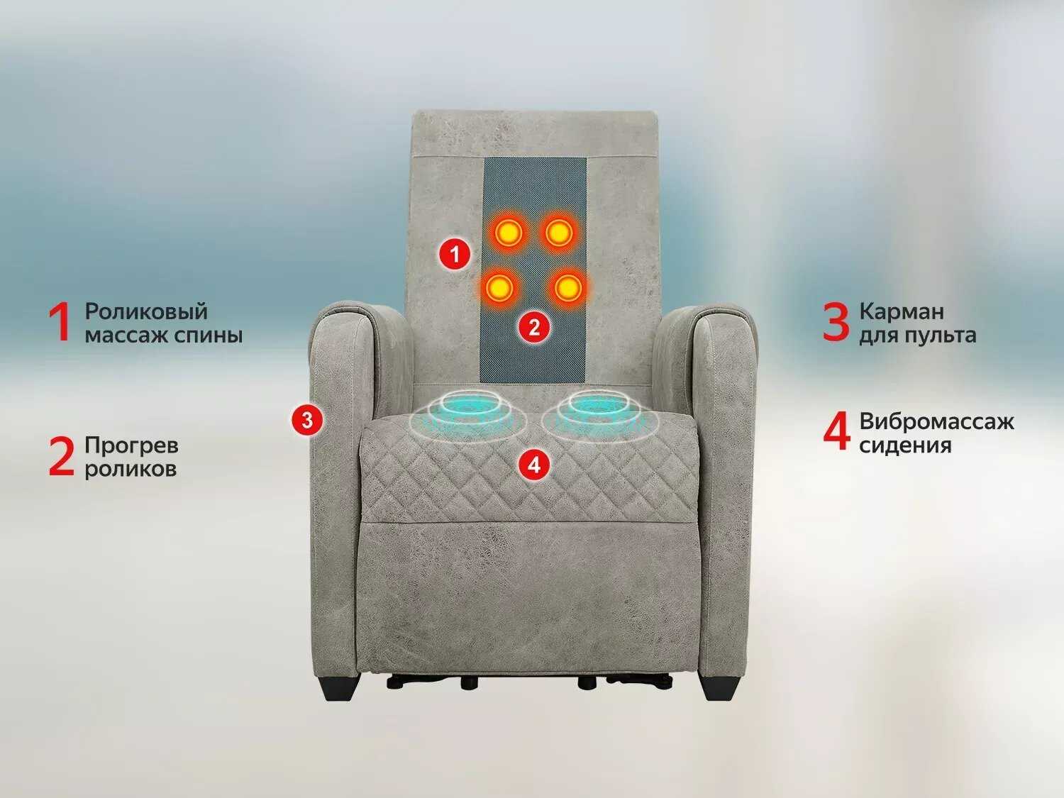 | Регулировка : | угол наклона подставки для ног, угол наклона спинки |
