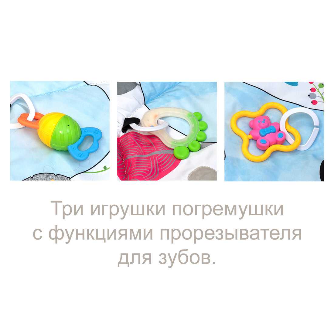 - + Коврик достаточно большой, мягкий и красивый. Есть несколько разнофактурных вставок(птичка с шуршащим крылом, шерстка овечки) , несколько погремушек.