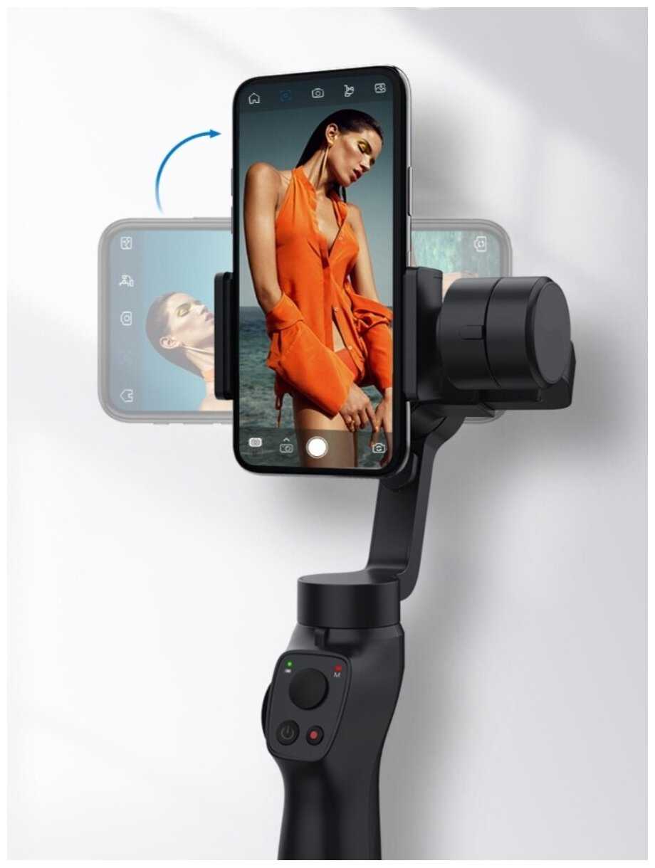 - Трехосевая стабилизация справляется с компактными и средними смартфонами, делая видео четкими и без тряски.