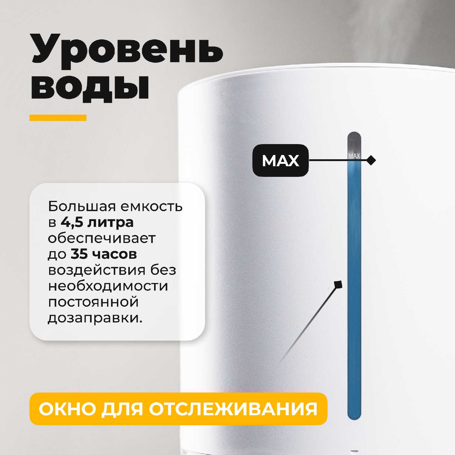 - Резервуар объемом 2–3 литра обеспечивает работу в течение ночи без дозаправки.