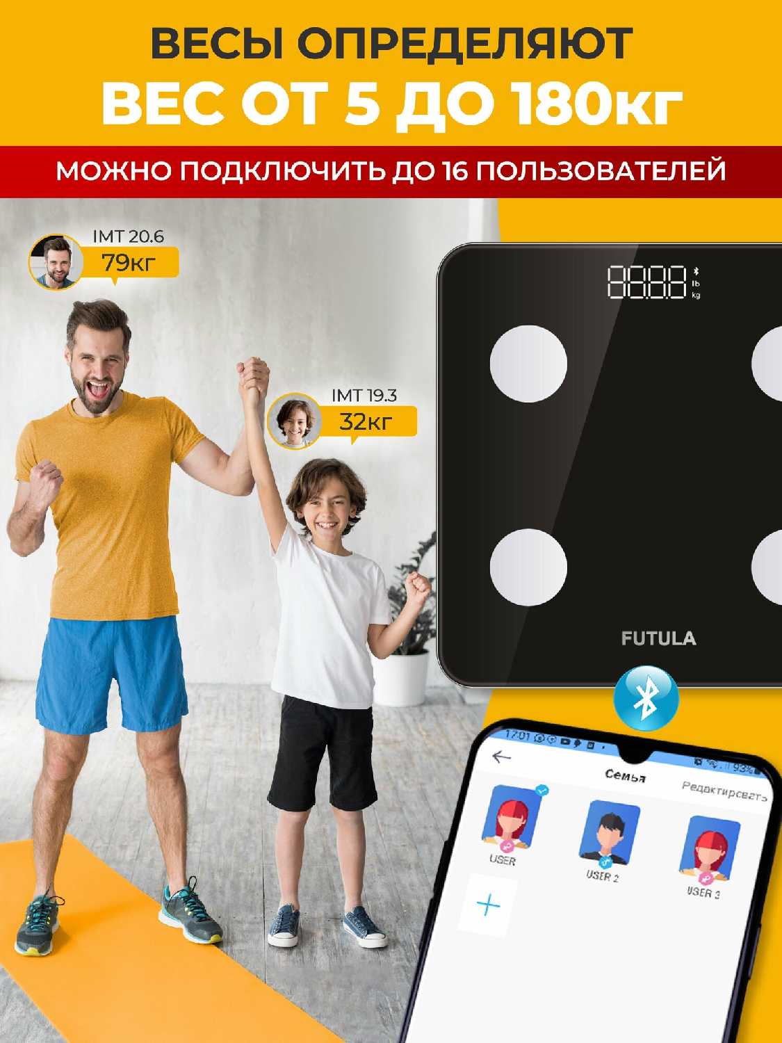 - + Прекрасно работают с приложение. Очень удобно вести мониторинг здоровья включая жировую массу, пульс и т.д.