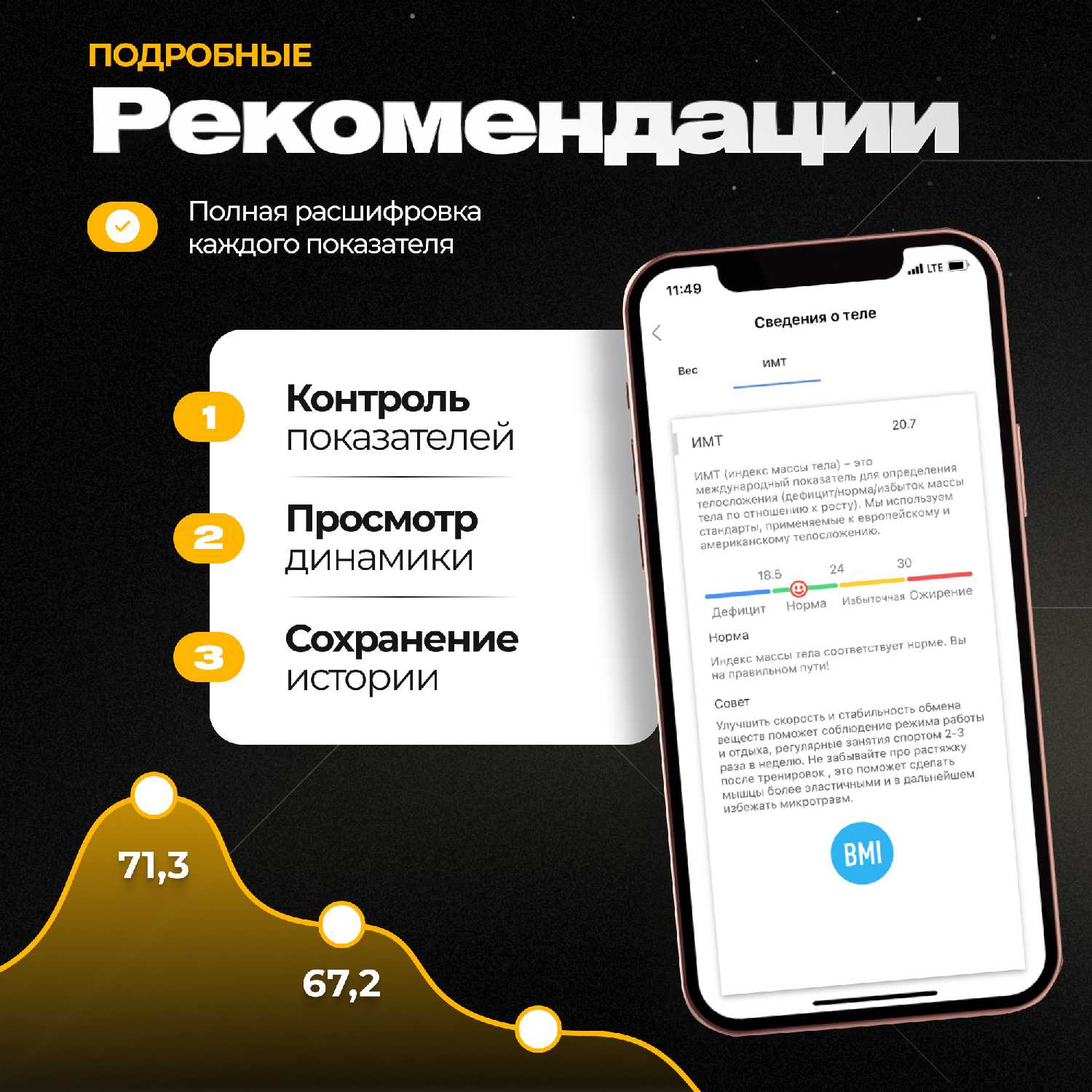 - + Точное отслеживание всех показателей тела (а их там ого-го).