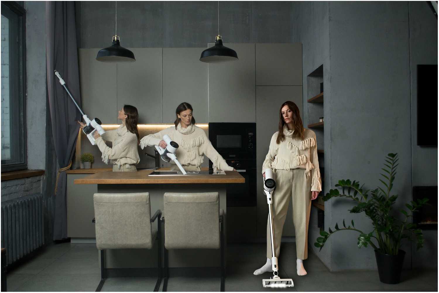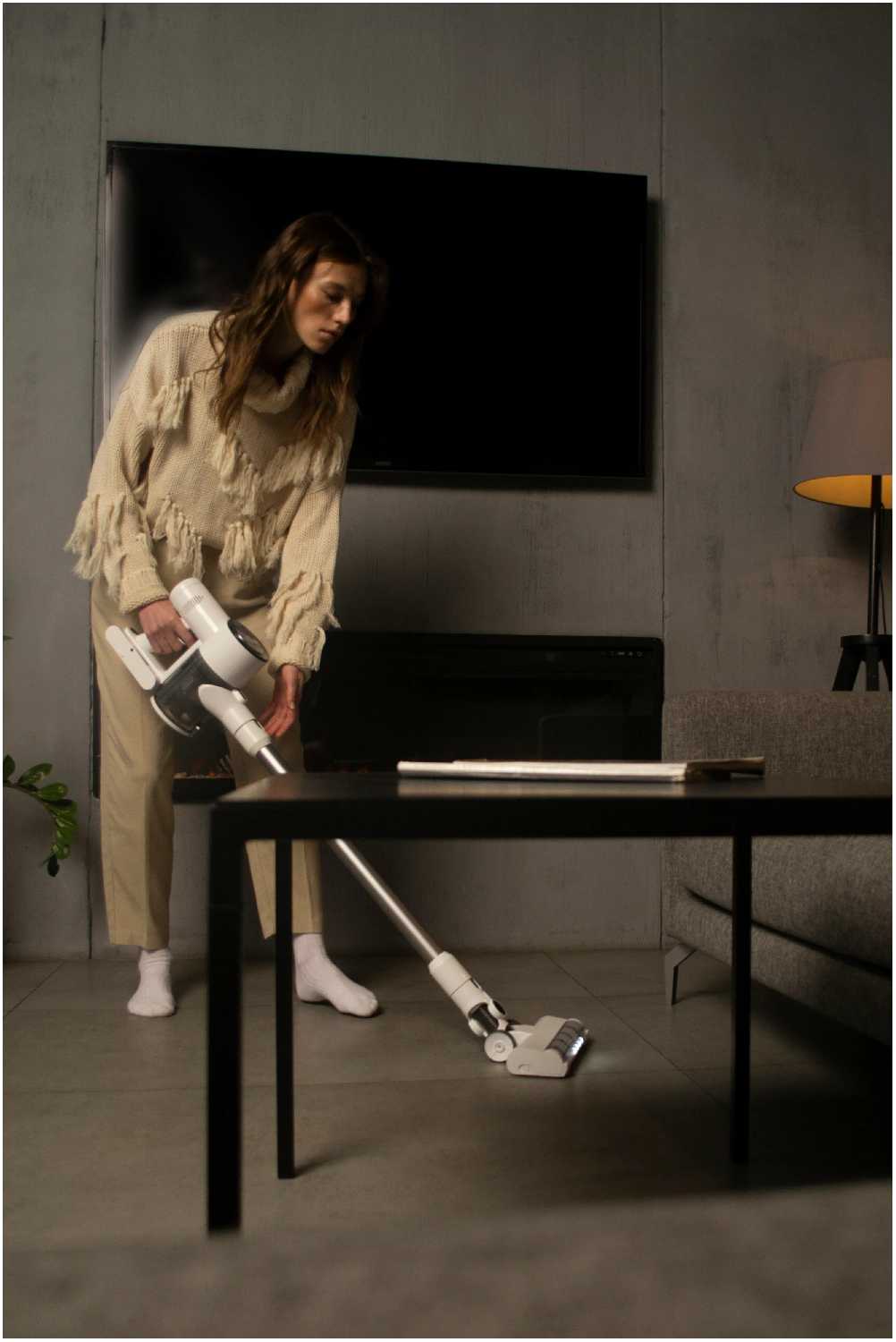 Благодаря вертикальной конструкции и весу 3–4 кг устройство маневренно, поворачивается одной рукой, а съемная ручка превращает его в компактный ручной девайс для чистки мебели, полок и салона авто. Однако ширина основной насадки не позволяет залезть под низкую мебель (менее 10 см от пола), а в углах эффективность снижается из-за незамкнутой щели всасывания. -