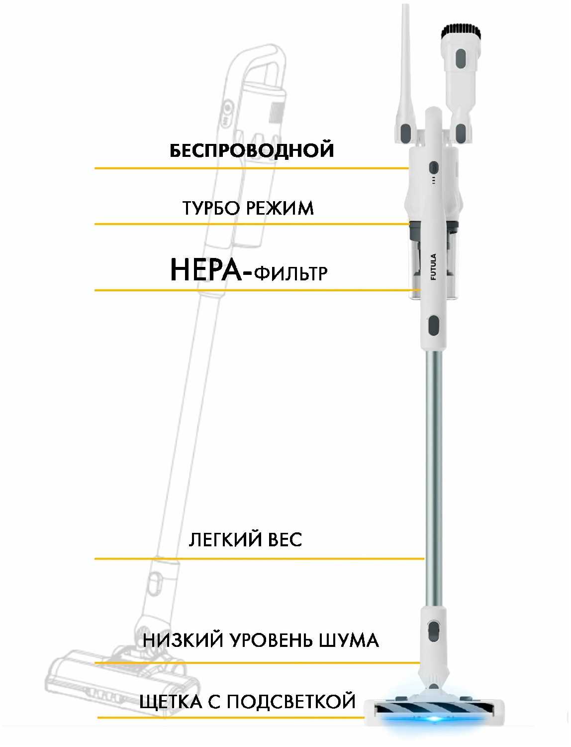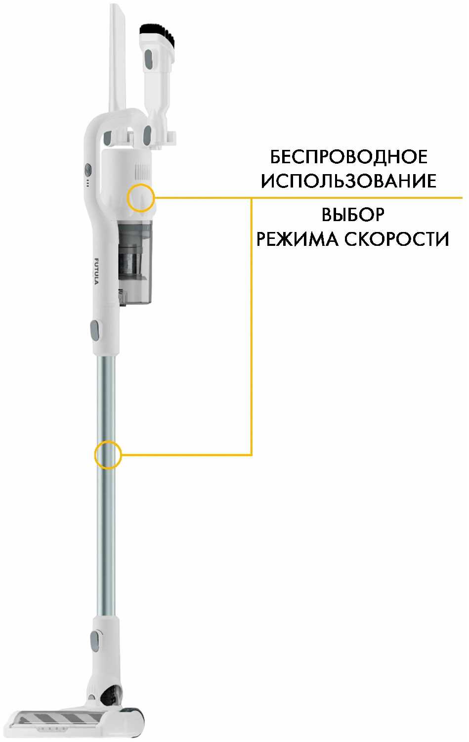 - + Проводной вертикальный пылесос Futula V2 переназначен для эффективной сухой уборки твердого пола. Сила всасывания 16000 Па. Работает в ручном и вертикальном режиме, в комплекте насадки для труднодоступных мест.