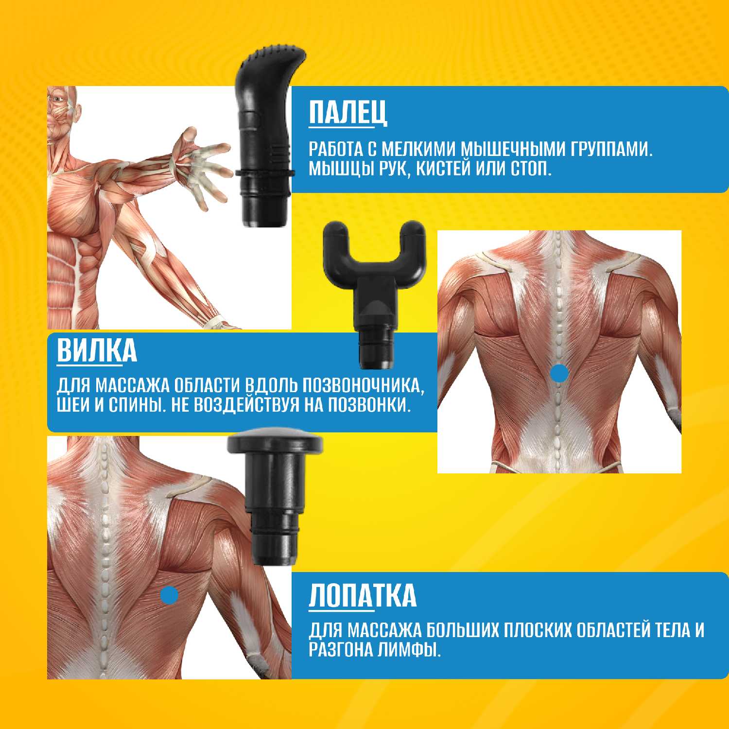| Подробная комплектация : | Массажный пистолет x 1 Массажные головки x 6 Адаптер питания x 1 Инструкция по эксплуатации x 1 Сумка для переноски x 1 Запасные уплотнительные кольца х 2 |