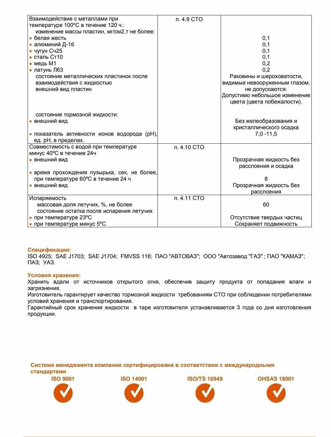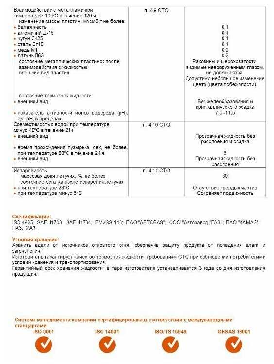 Допуски и стандарты : | FMVSS 116, ISO 4925, SAE J1703, SAE J1704 |