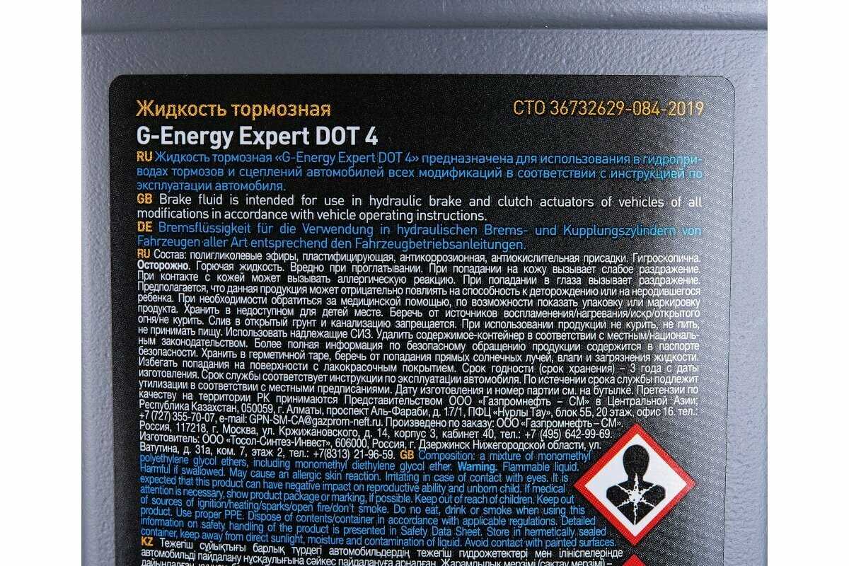 Дополнительная информация : | G-ENERGY 2451500003 - Жидкость тормозная G-Energy Expert DOT 4 |