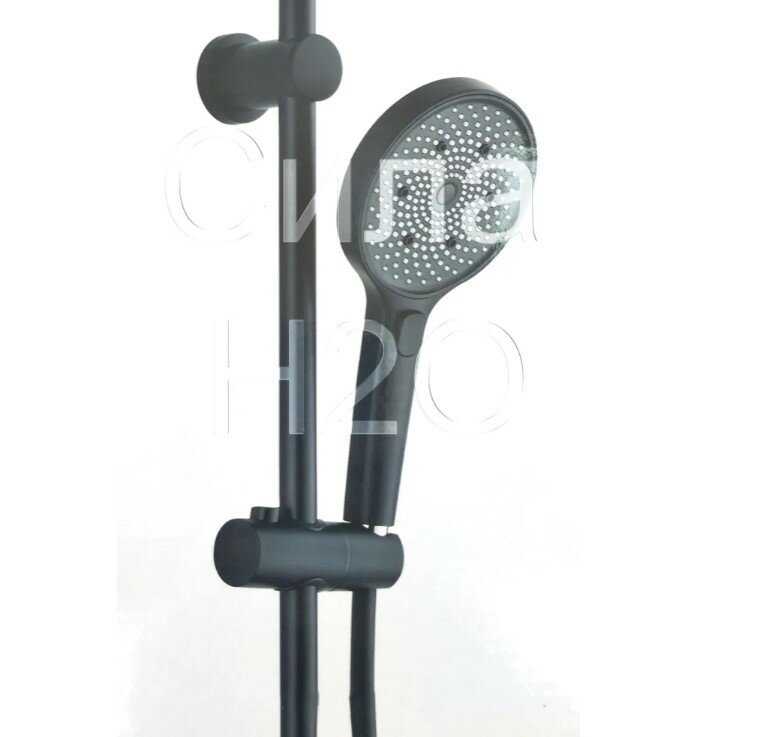Выглядит стильно и симпатично, особенно черный вариант, гармонирует со смесителями той же марки. Широкие лейки и цельная штанга добавляют современности. Пользователи хвалят внешний вид в ванной. Не выглядит дешево несмотря на пластик. -