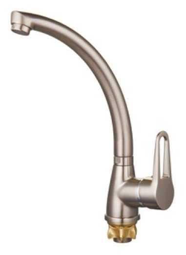 Такой смеситель, я считаю, подходит в любую кухню, так как он стильный и современный. У этой модели вместо двух вентилей установлен один рычаг переключения воды, что удобно для плавной регулировки напора и температуры. Воду подает смеситель тихо, не разбрызгивая. Красивый цвет этой модели создается с помощью специального напыления. Оно же помогает долго сохранять внешний вид и не бояться ржавчины и царапин.