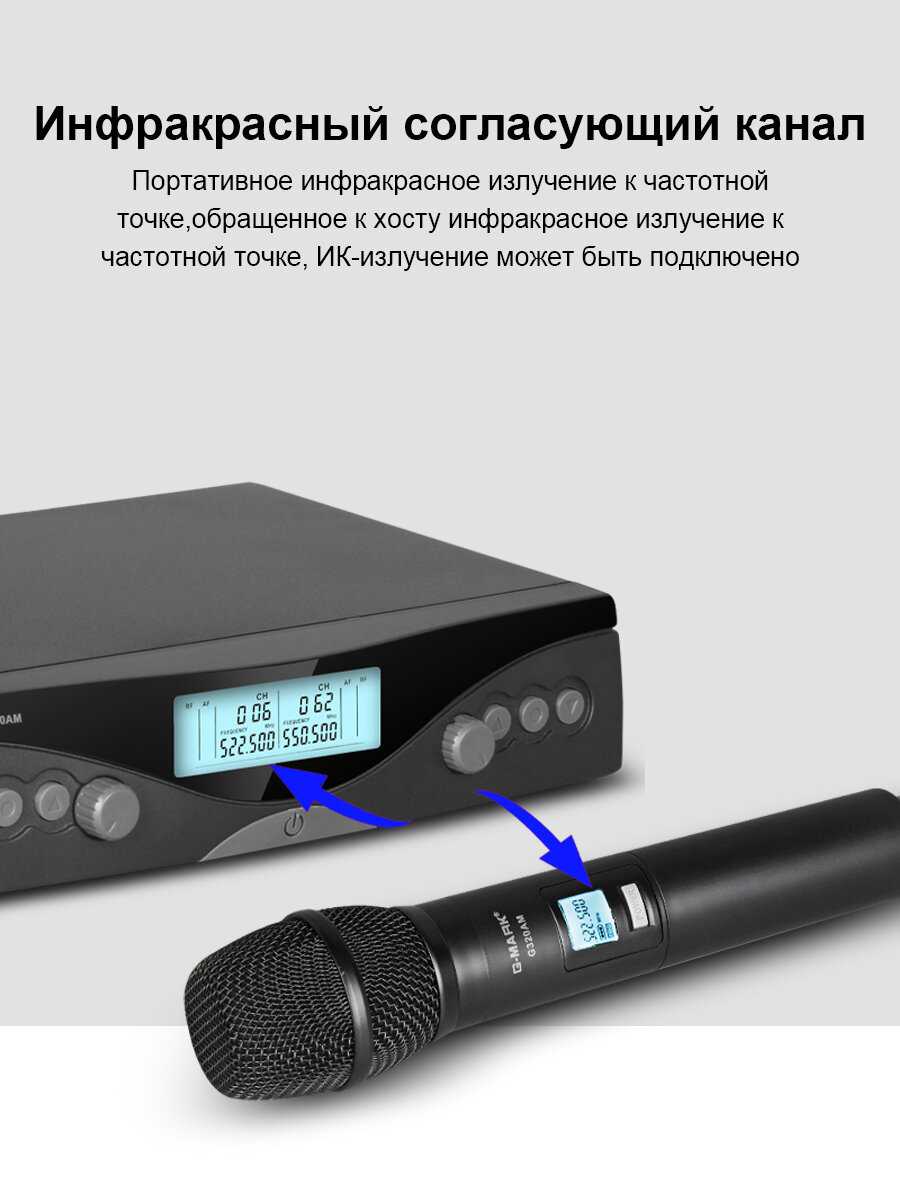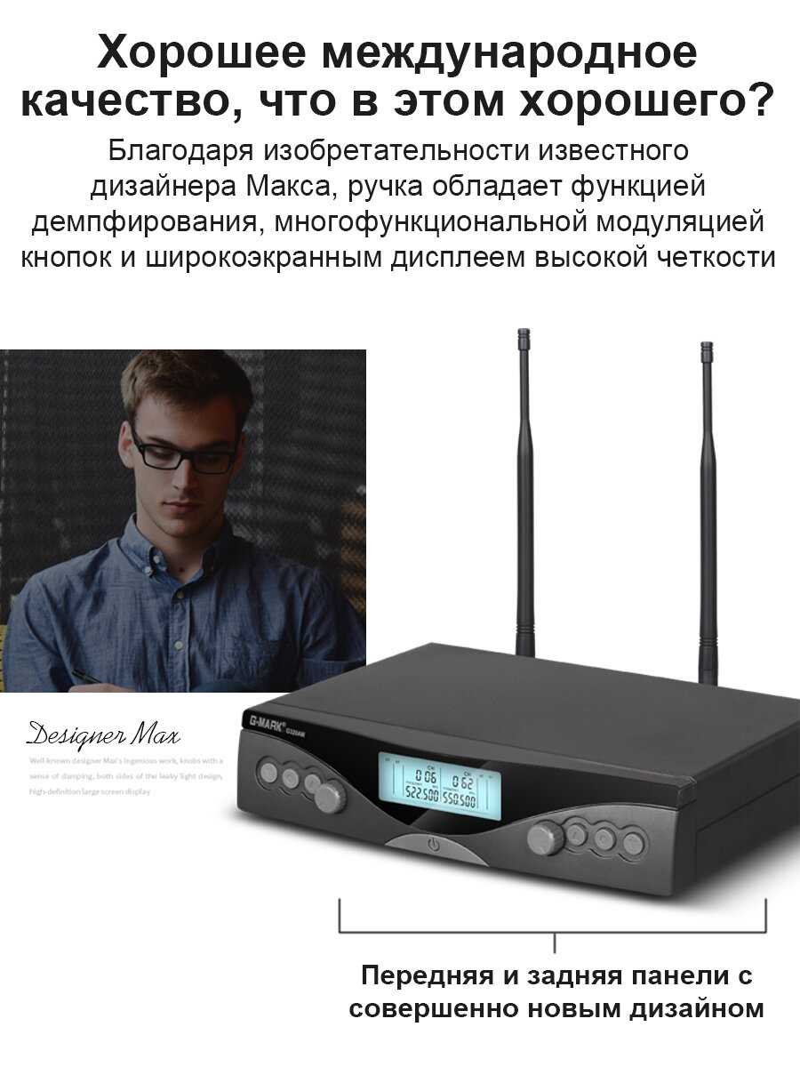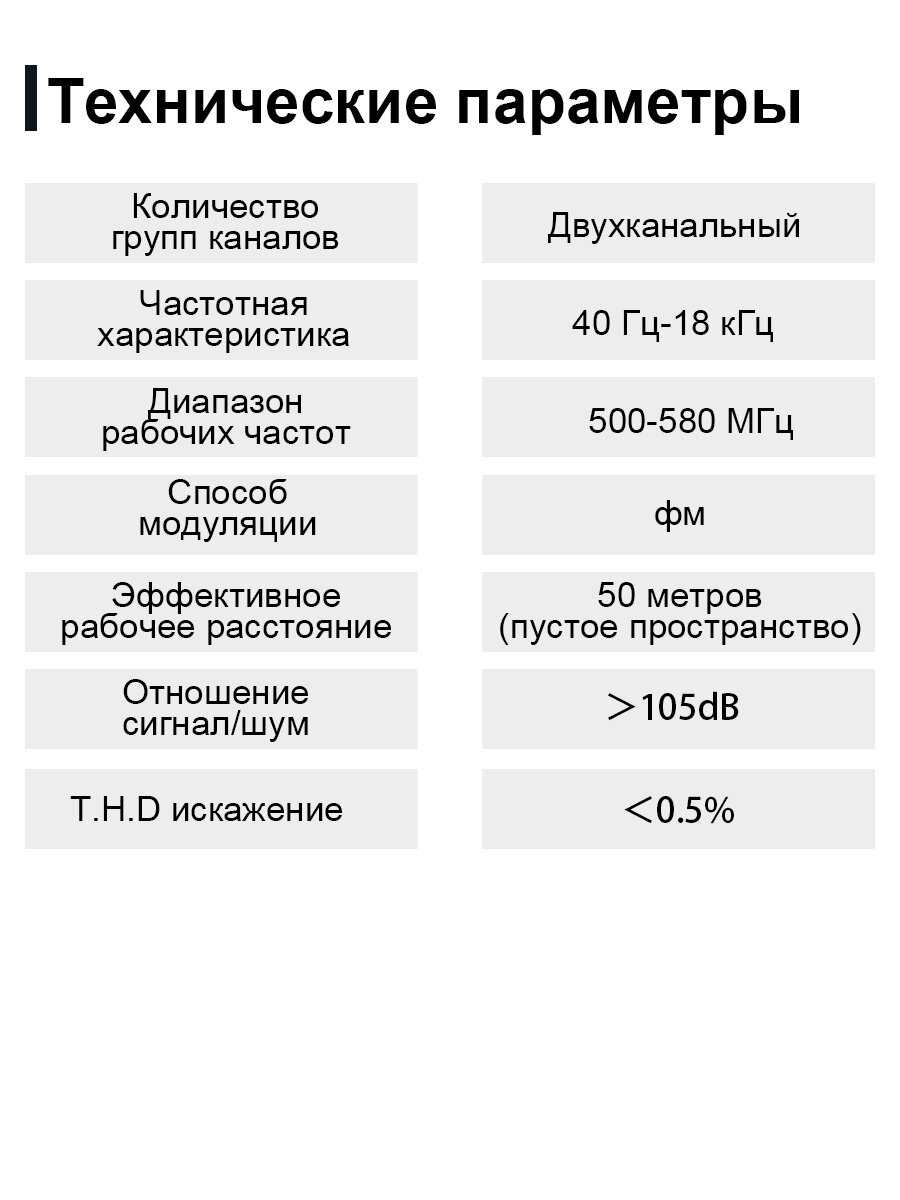 Подробная комплектация : | Приемник Два микрофона Две антенны Вилка питания Аудиокабель Два защитных кольца микрофона руководство по эксплуатации |