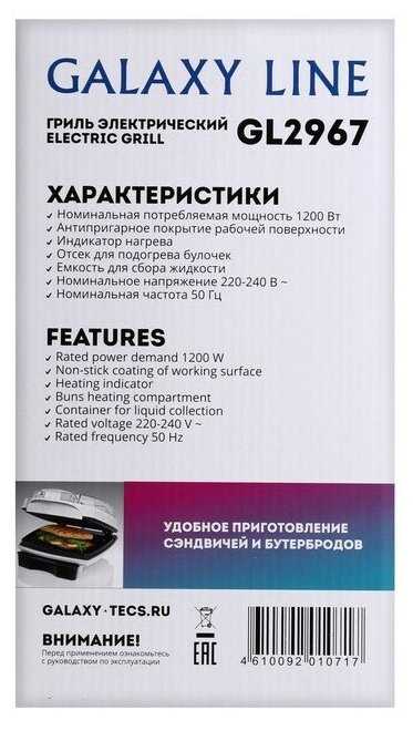 Отзывы о Гриль электрический GALAXY LINE GL2967