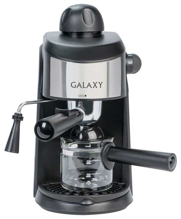 быстро нагревается и подает пар или выдавливает кофе из молотого кофе.