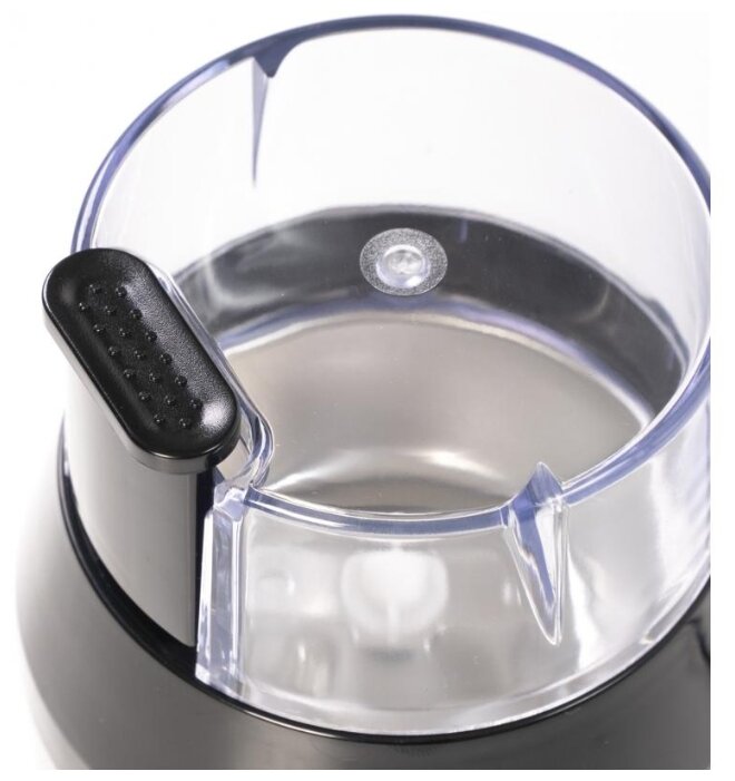 - Прозрачная крышка позволяет контролировать процесс, помол получается мелким за 10-20 секунд.
