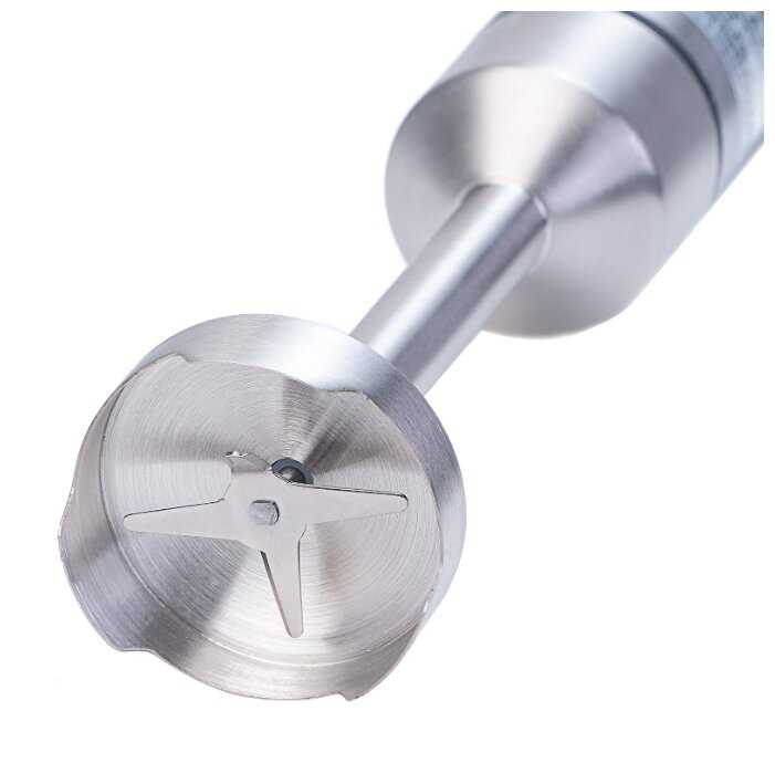 | Дополнительная информация : | четырехлопастной нож из нержавеющей стали 18/10, прорезиненная поверхность насадки - венчика и насадки - измельчителя, габаритные размеры: 205 х 145 х 23 см |