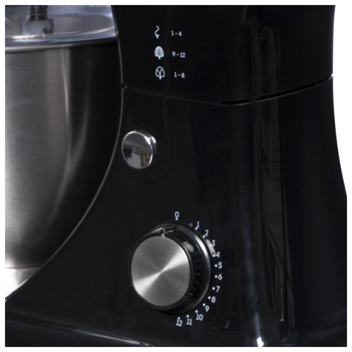 - Мощный двигатель с 12 скоростями для быстрого взбивания и замеса: