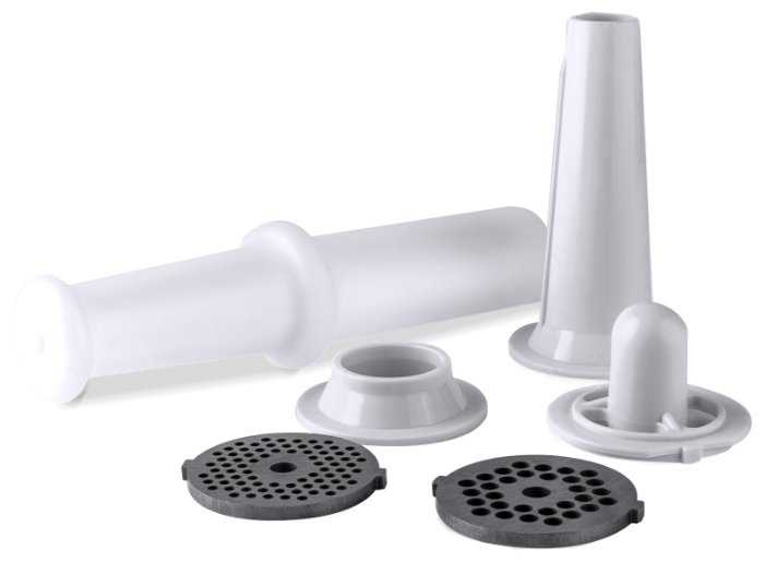 - + Отлично рубит мясо. Не сильно шумит. Полный комплект.