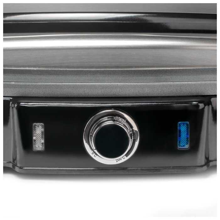 - Механическое управление с терморегулятором до 200 градусов упрощает контроль температуры для разных блюд.