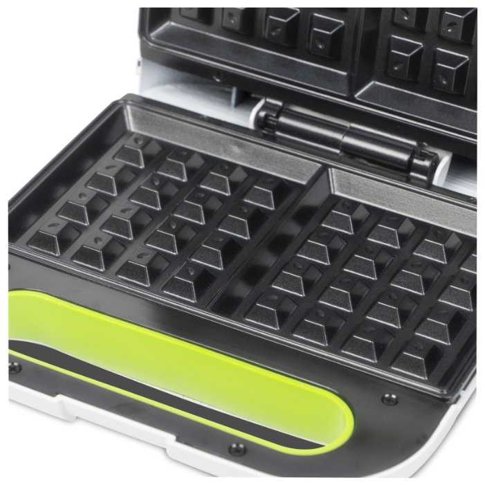 - Не требует смазки маслом (достаточно раз перед первой партией), вафли легко снимаются лопаткой или шпажкой.