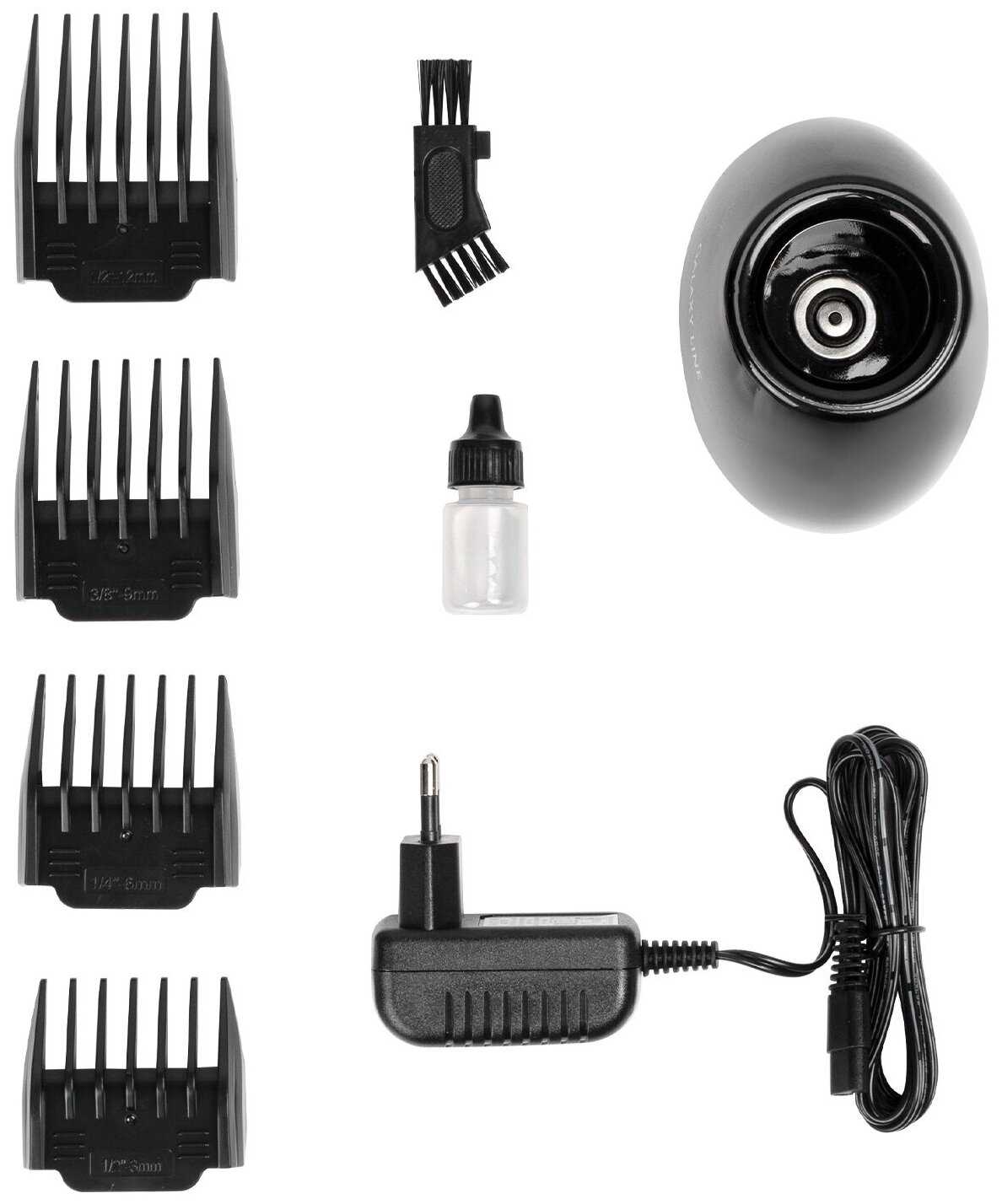| В комплекте : | адаптер, кабель для зарядки, масло, подставка для зарядки, расческа, щеточка |