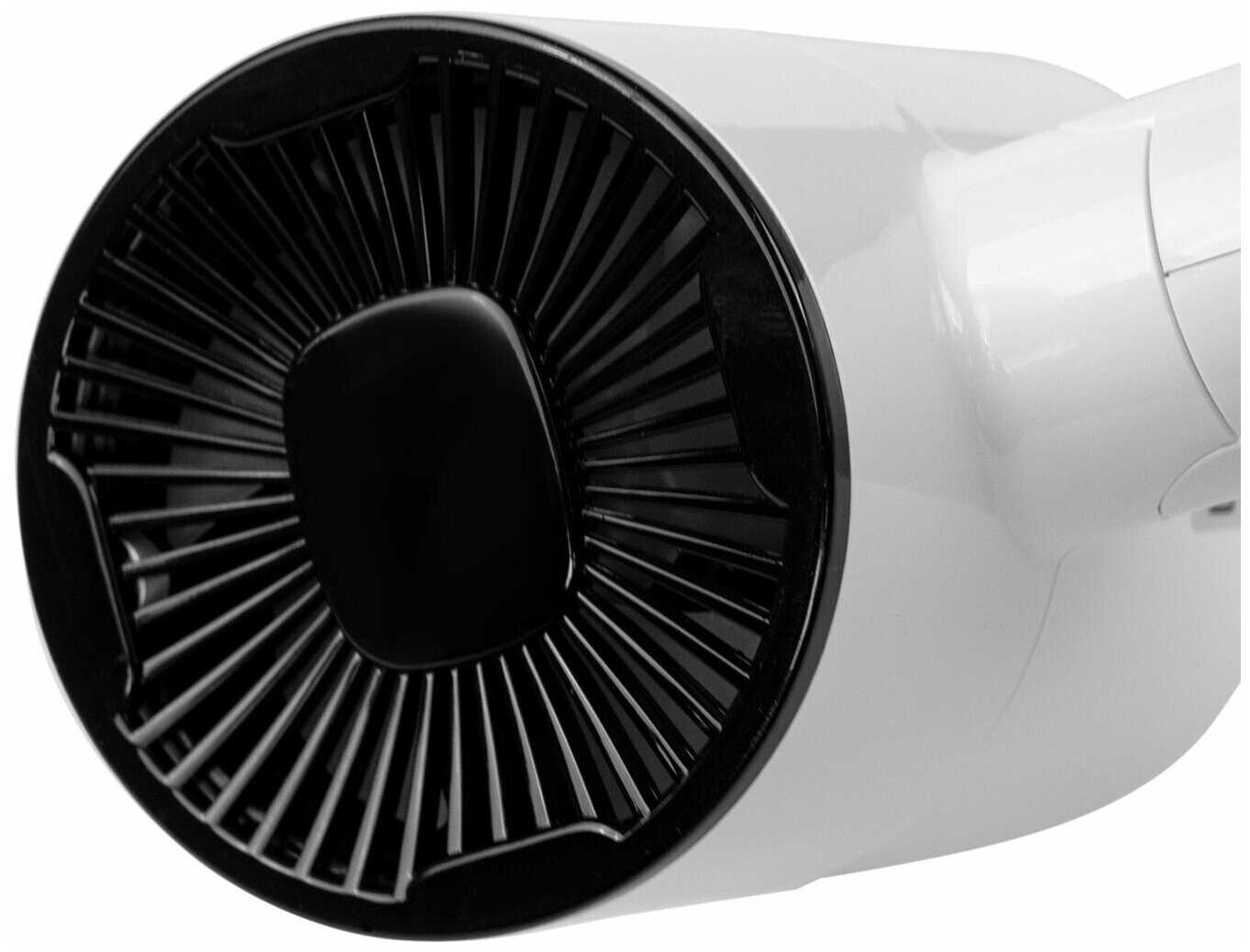 - + Цена, лёгкий , компактный. 2 скорости, холодный воздух, мощность 1400 Вт.