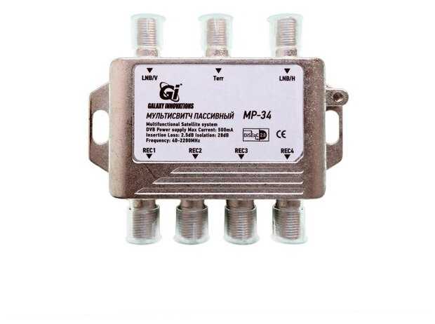 Дополнительная информация : | количество выходов - 4, входы спутниковой ПЧ - 2 к входам H и V, количество эфирных входов - 1, диапазон спутниковой ПЧ: 950 - 2200 МГц, эфирный диапазон: 40 - 862 МГц, максимальный ток нагрузки - 500 mA |
