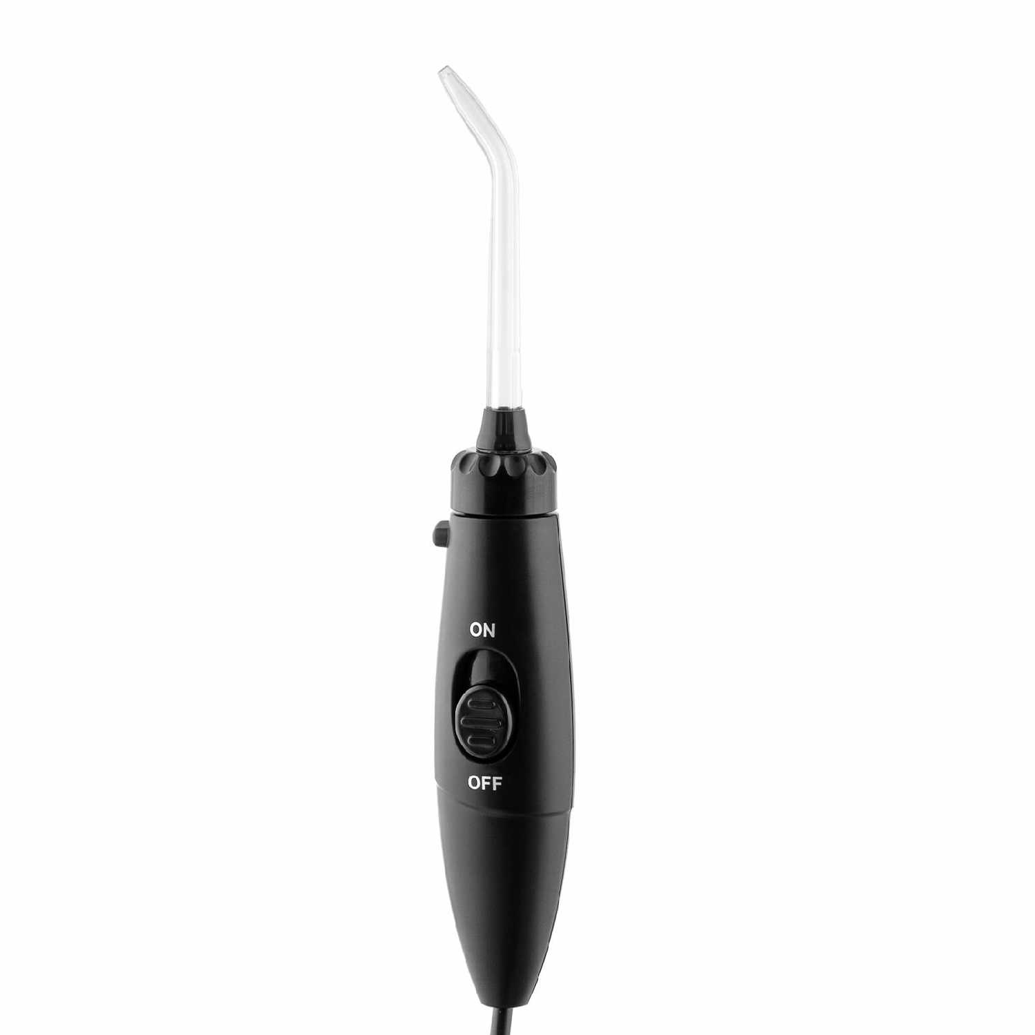 Ирригатор хорош тем что работает не от аккумулятора. Много насадок длинный шланчик, можно регулировать силу подачи воды.