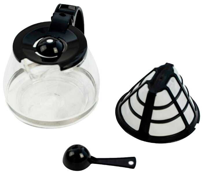 - Стеклянный кувшин прочный, ручка не греется, видно уровень кофе.