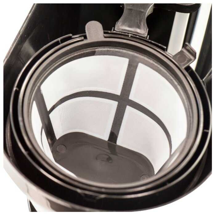 Фильтр моется очень легко, даже если про него забыть и там всё засохнет. Мы готовим всегда порцию на 2 обычные чашки (4 деления). Если делать на 3 чашки (6 делений), то кофе наливается в чайник доверху и при попытке достать чайник - кофе неизбежно проливается.