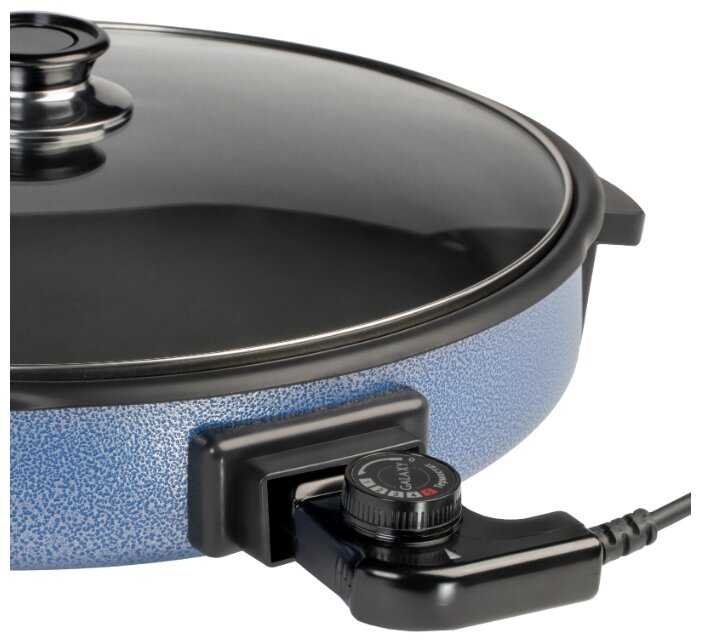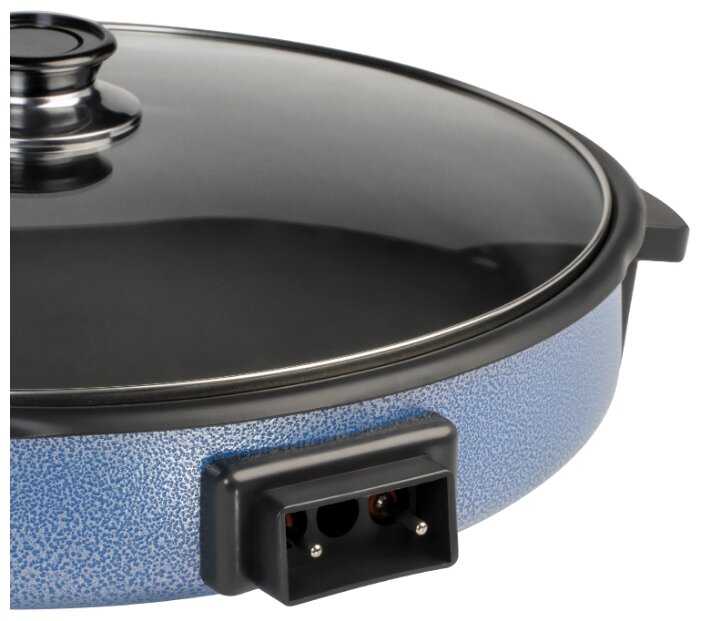 Подробная комплектация : | электросковорода, стеклянная крышка, шнур питания c регулятором температуры, книга рецептов, руководство по эксплуатации |