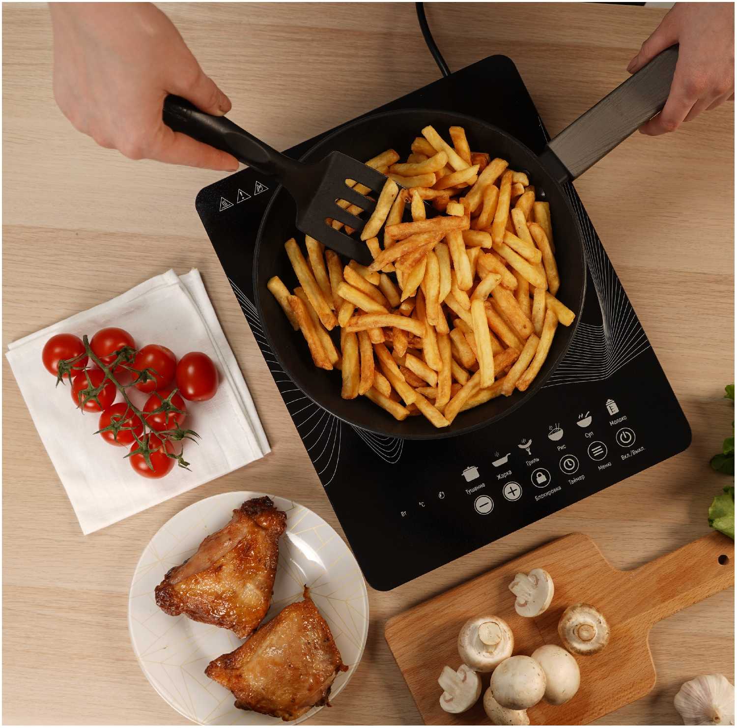 | Конфорки : | индукционная, электрическая |
