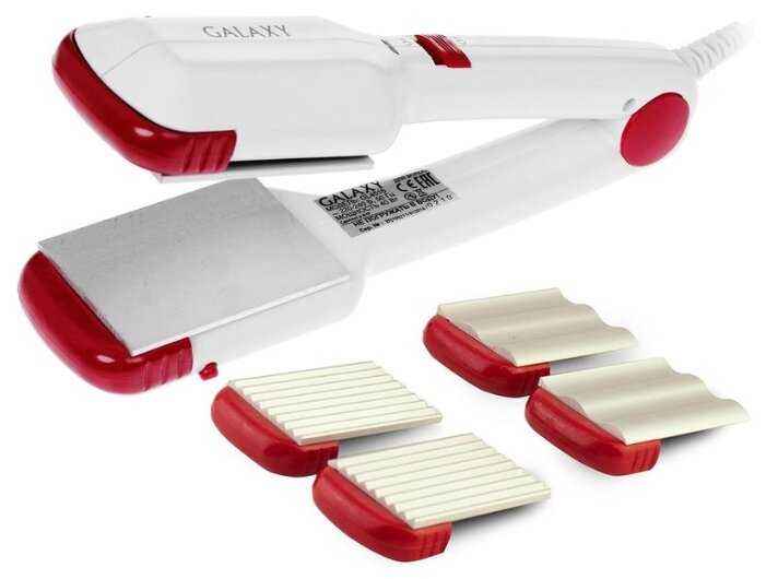 - + Лёгкая смена насадок, 2 вида фафельн. И она выпрямитель