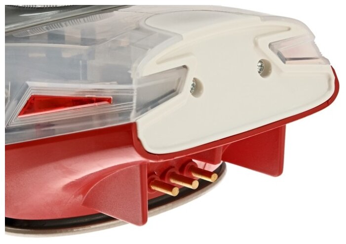 Из трёх контактов один был короче. Поэтому сначала приходилось придерживать утюг вплотную к его станции(базе) . Потом в месте брака появились искры и контакт перегорел. Собственно, утюг через месяц был не годен к эксплуатации.