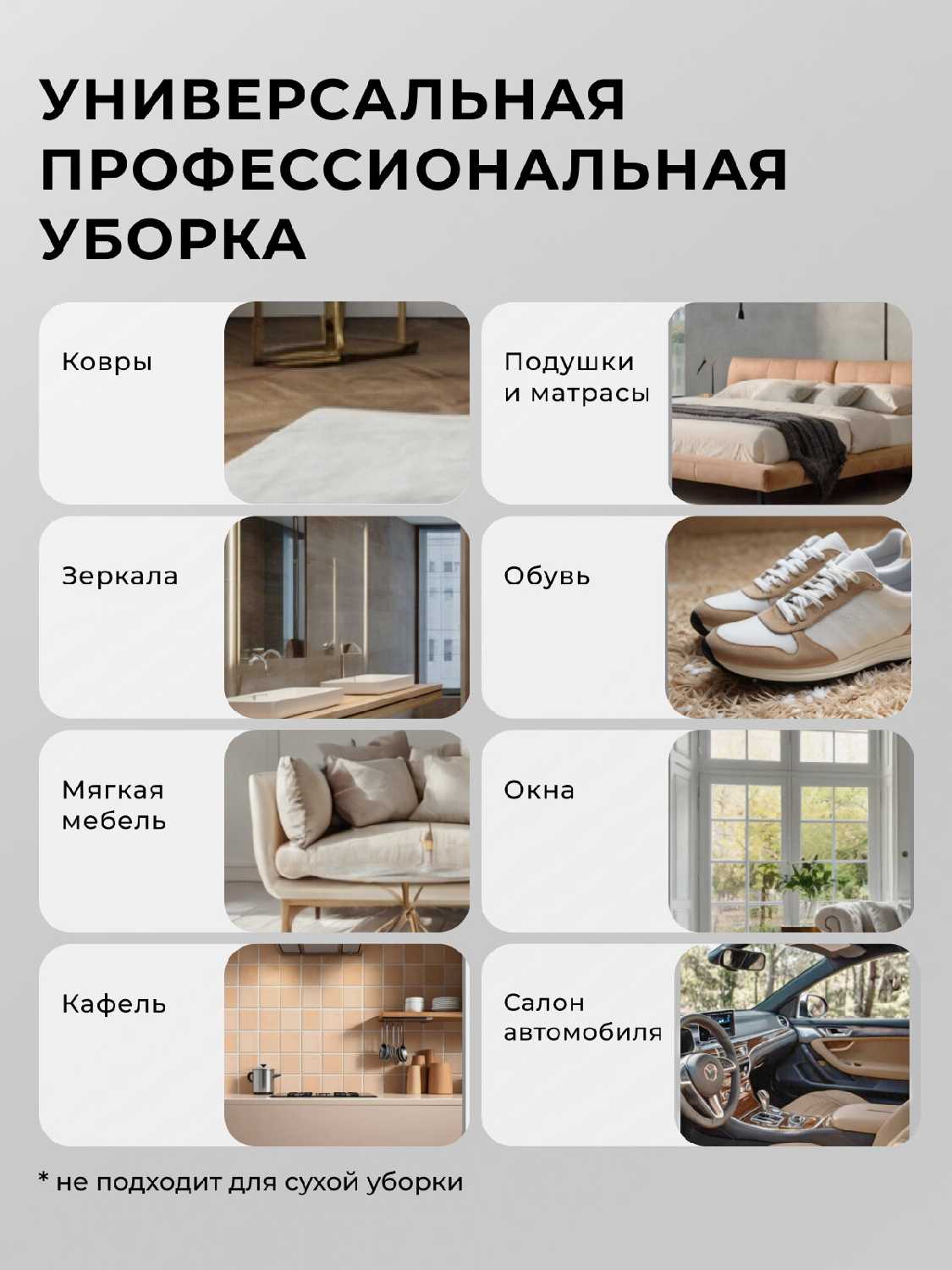 - Тип уборки: влажная