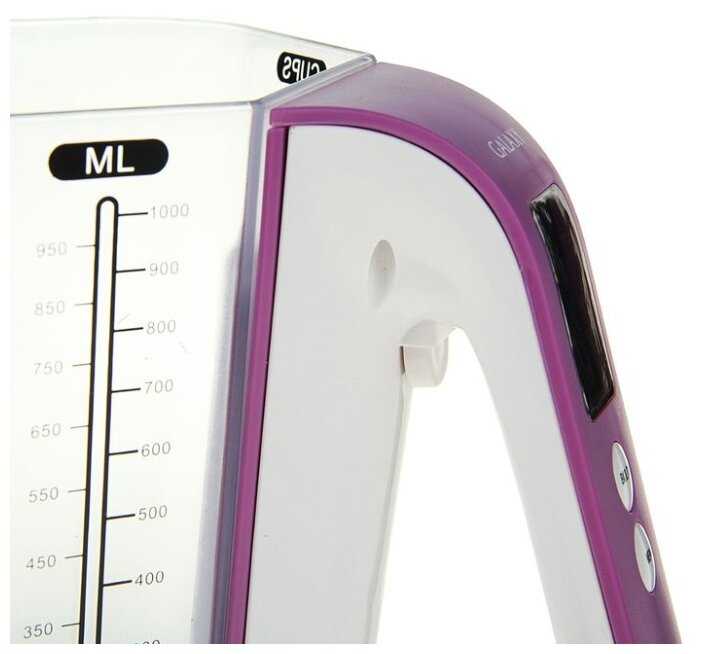 Кто следит за своей фигурой поймет необходимость такой вещи. Нравиться цвет. Приятная цена. Удобные кнопки на ручке. Метки для определения объема жидкости. Очень удобная функция взвешивания без учета веса посуды.