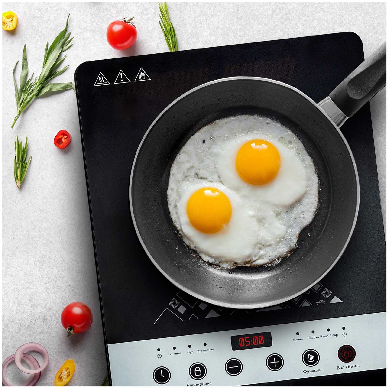 - + Индукционная, а значит очень быстро доводит жидкости до кипения. И жарит тоже быстро. Но, конечно, для этого требуется специальная посуда. Не считаю это минусом, но данный факт необходимо все же отметить.