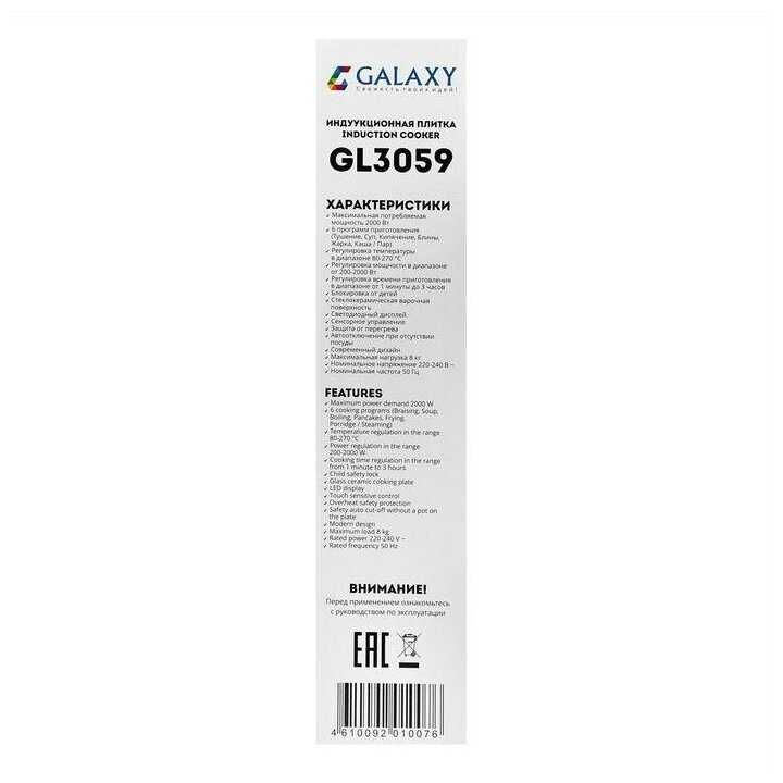 Отзывы о Индукционная плита GALAXY LINE GL 3059