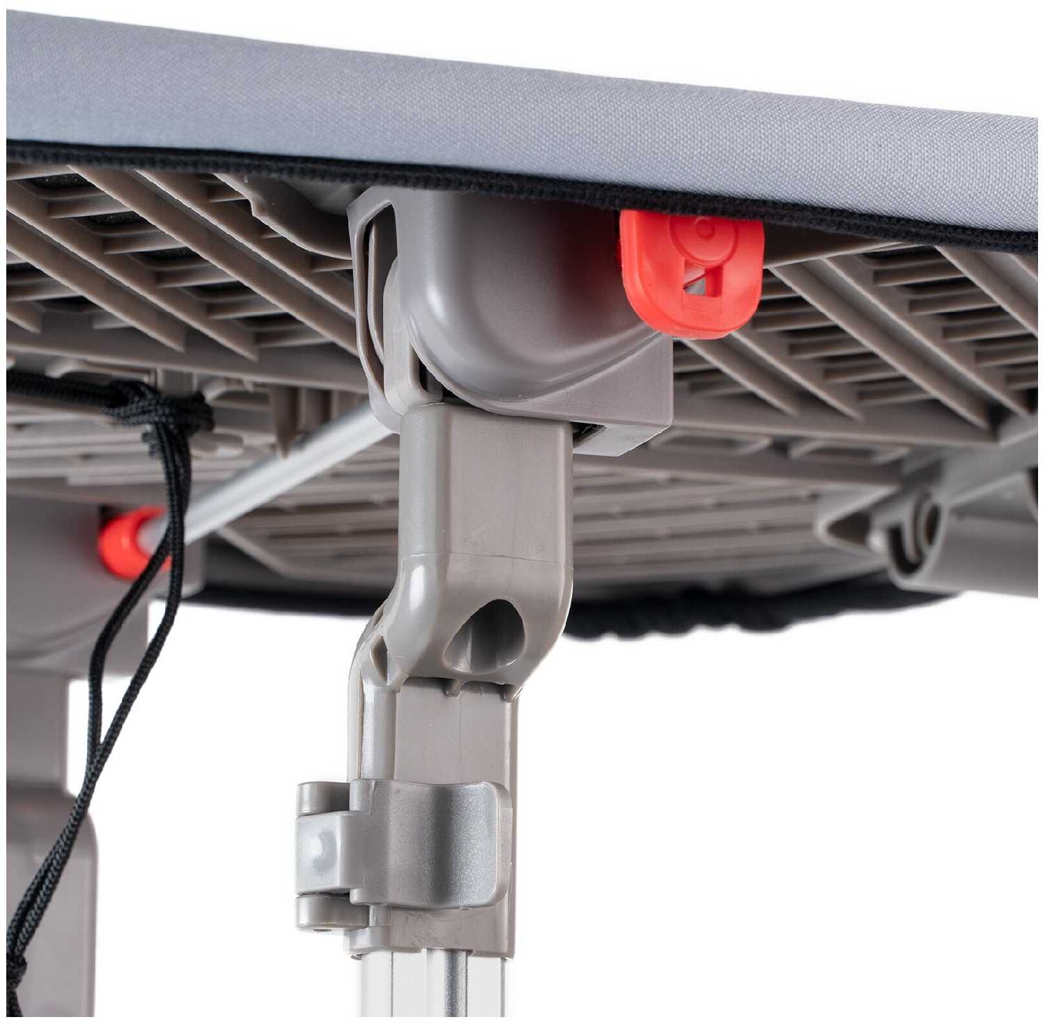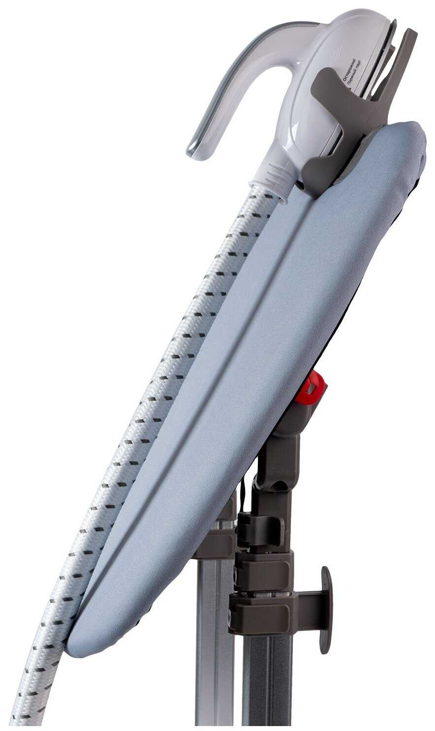 При использовании доски в горизонтальном положении вообще песня - или утюжок с проводом на доске (ну вот крепится он так), или непосредственно одежда для глажки.