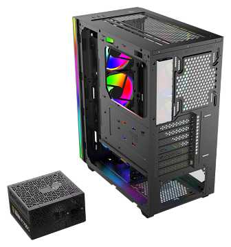 блок питания внизу, горизонтальное расположение